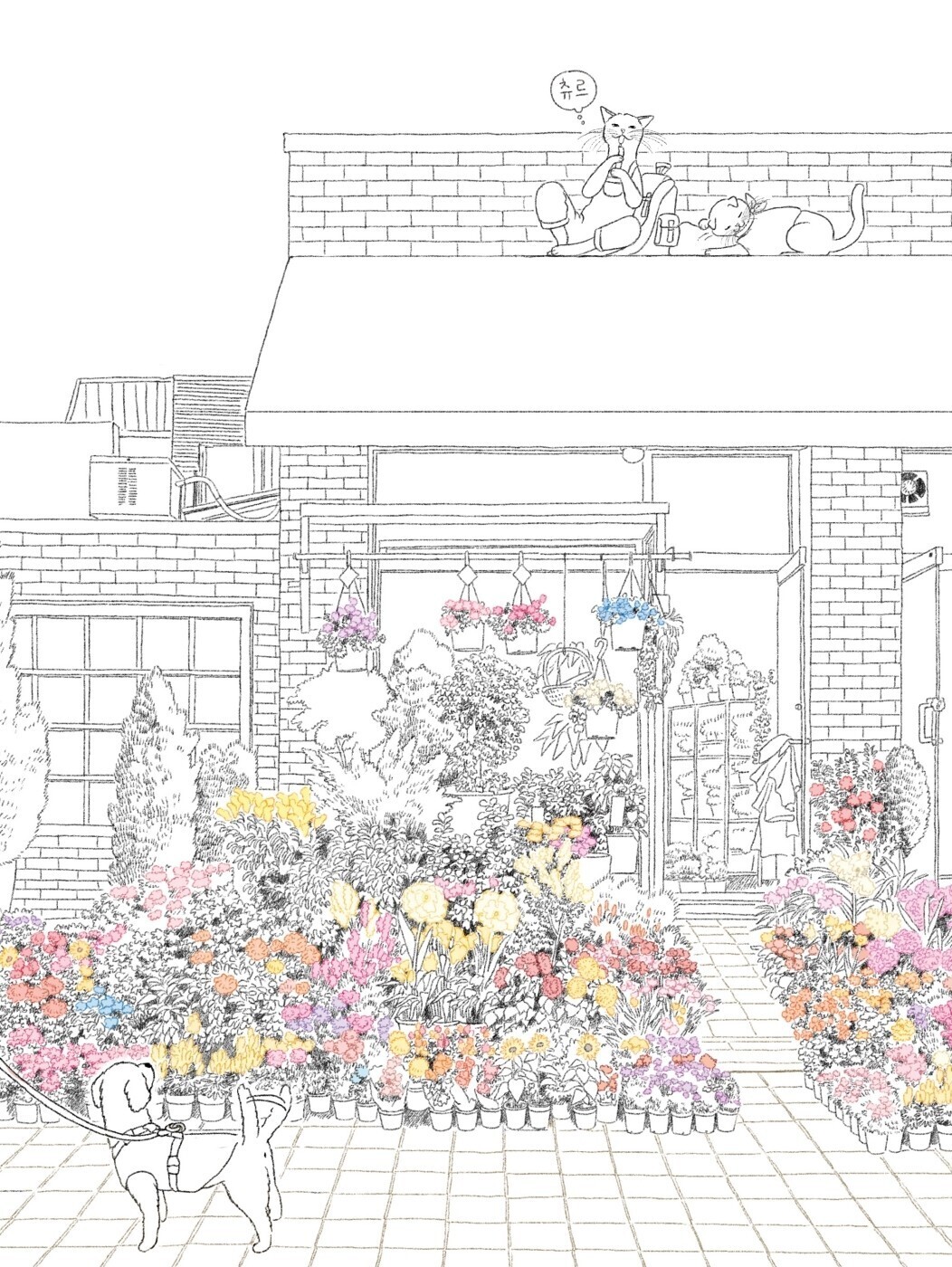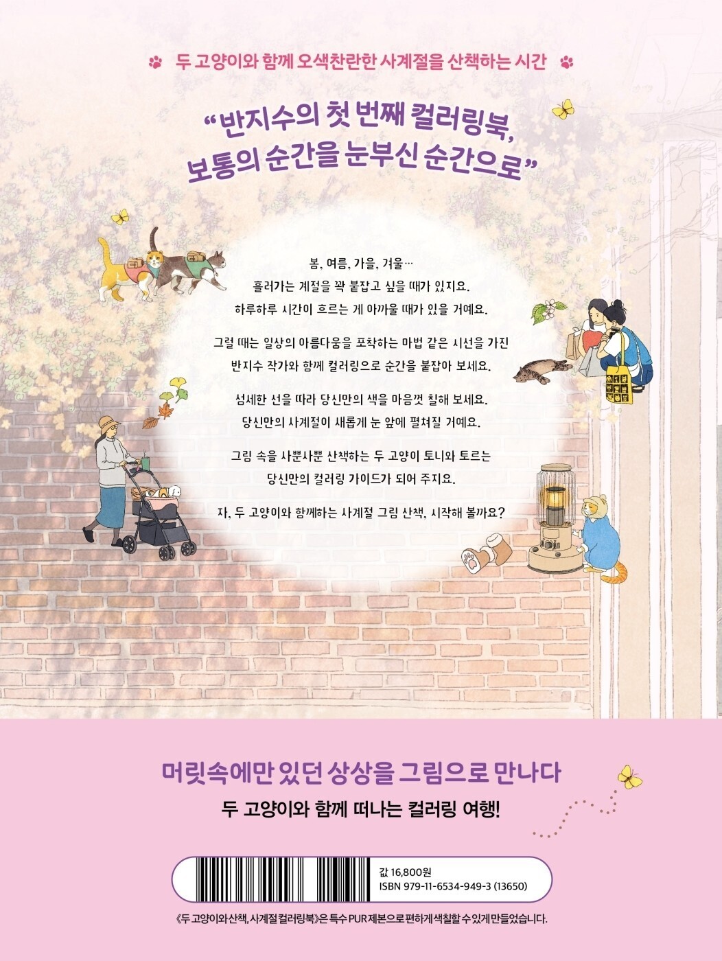 Первая раскраска известного корейского иллюстратора Бан Джису — «Два котенка и прогулка, раскраска четырёх сезонов» — была выпущена. Эта книга, наполненная уютной атмосферой, привнесённой автором, вызвала волну популярности в книжных магазинах благодаря своим успокаивающим обложкам. В ней содержится красота каждого времени года, запечатлённая глазами автора. В этом произведении изображены весна с её расцветающими лепестками, лето с блеском на воде, осень с яркими листьями и зима, когда снег нежно покрывает землю... Рисунки Бан Джису, обладающие магическим взглядом на вечное, можно раскрашивать, создавая собственные эмоциональные произведения искусства.