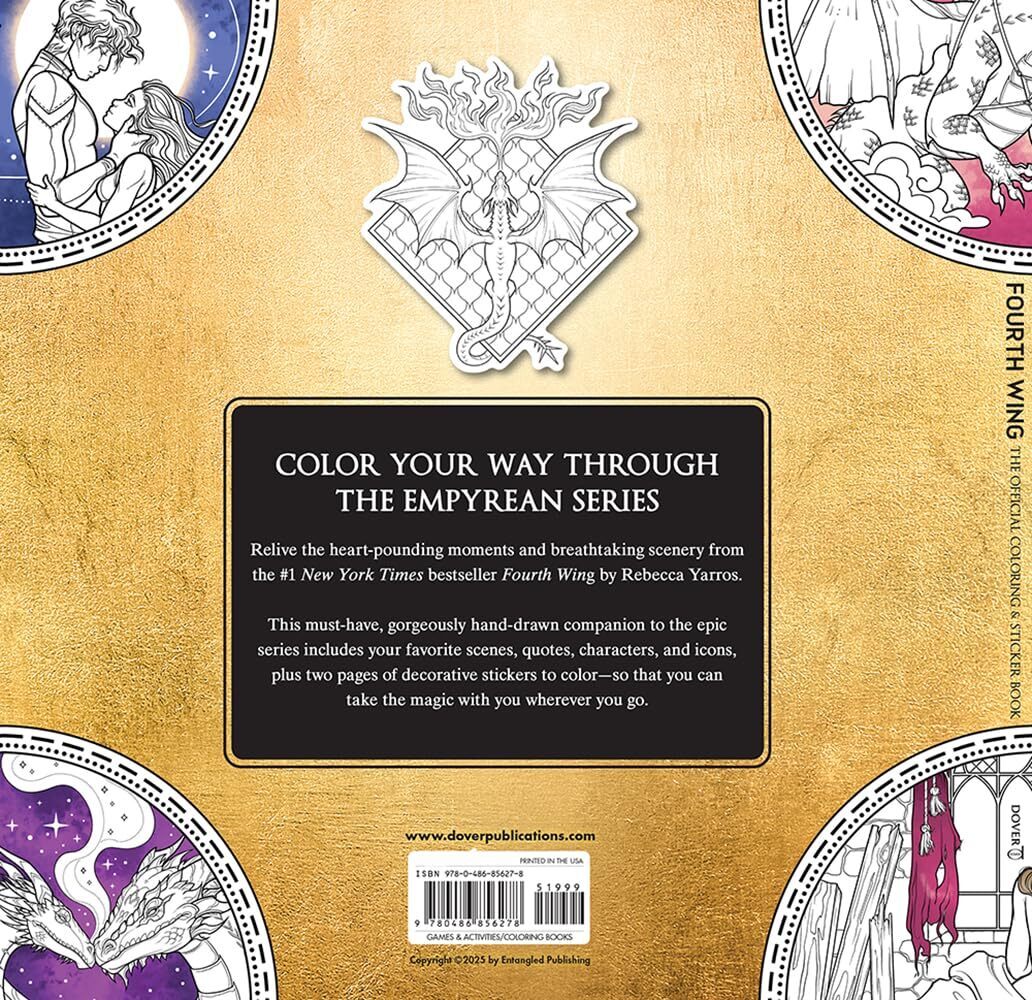Погрузитесь в захватывающий мир The Empyrean с “Fourth Wing: The Official Coloring and Sticker Book” — обязательным дополнением к эпической серии и мировому феномену.