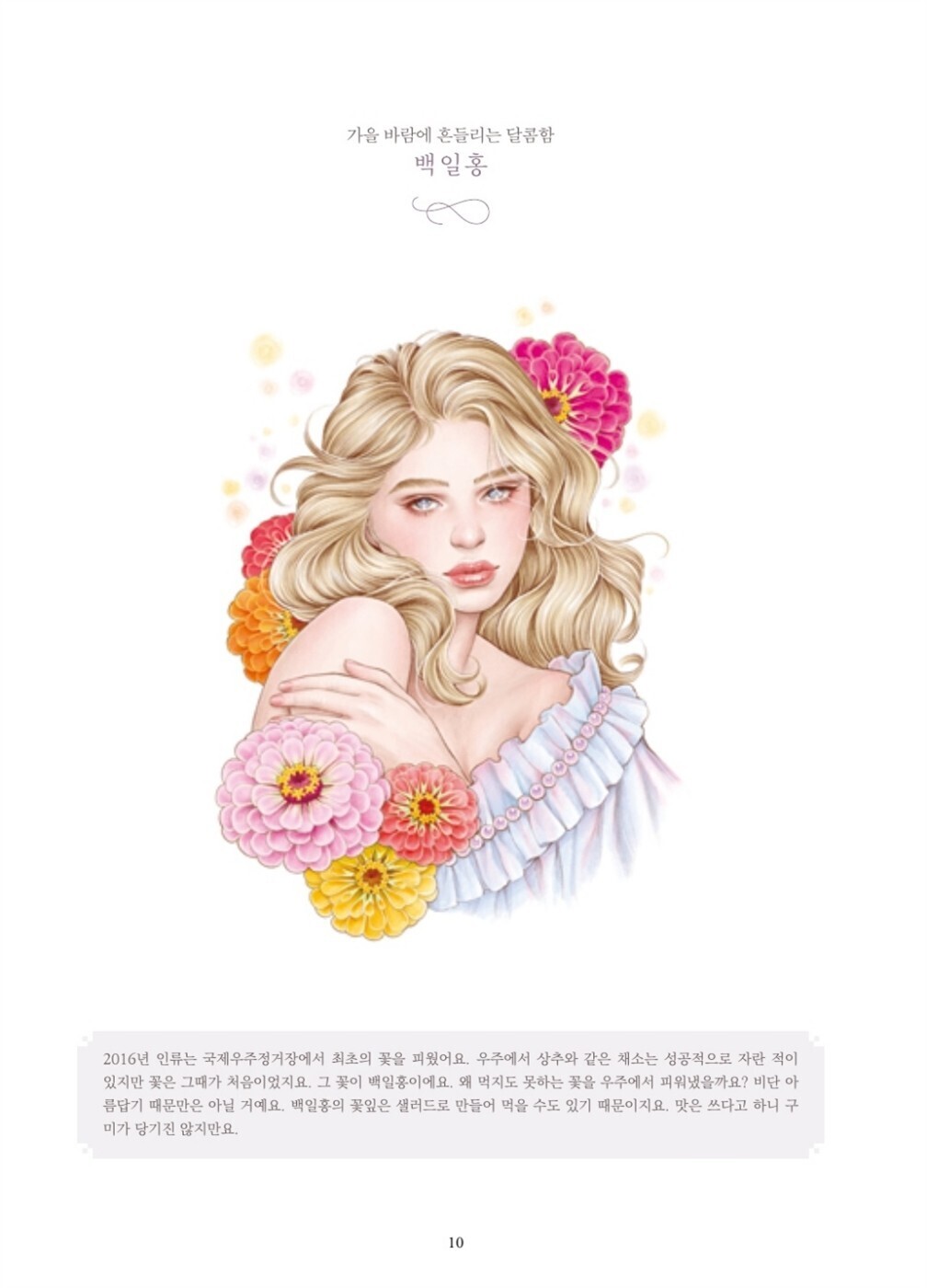 «Дамы сада. Раскраска» предлагает уникальную коллекцию из 33 иллюстраций, объединяющих изысканные образы женщин с изумительными растениями и плодами сада. Автор книги, Юн Джухе (Lana Green), известна своими работами, посвящёнными цветам, птицам и природе. Её элегантные, утончённые рисунки, вдохновляющие на расслабление и созерцание, завоевали популярность среди поклонников по всему миру через SNS.