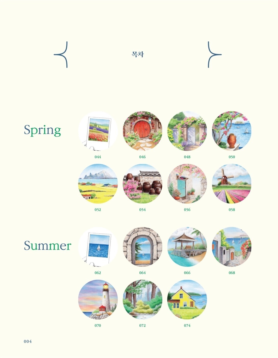 Этот раскраска предлагает вам возможность легко раскрасить прекрасные пейзажи всех сезонов с помощью цветных карандашей. Весной вы сможете раскрасить красивые цветы, солнечные сады, весеннее море, цветущие рапсовые поля в Чеджу, рододендроны, цветники и кустарники, а также сцены с ветряными мельницами. Летом вас ждут свежие пляжи, прекрасные пейзажи Мальдив, виды на море в Греции, закатные моря и лесные сцены. Осенью вы будете раскрашивать пейзажи с тыквами, заборами, покрытыми лианами, осенними листьями в долинах, виды с поезда и березовые леса. Зимой на ваших страницах появятся горные пейзажи, снежные тропы в деревне и домики, покрытые снегом.