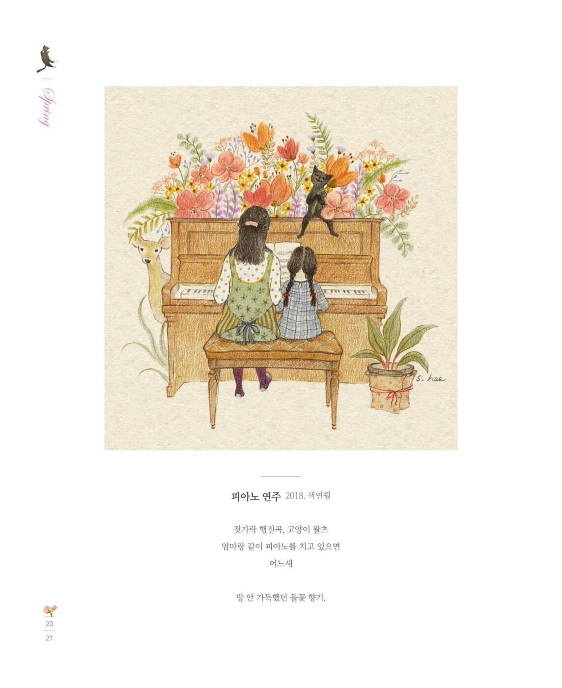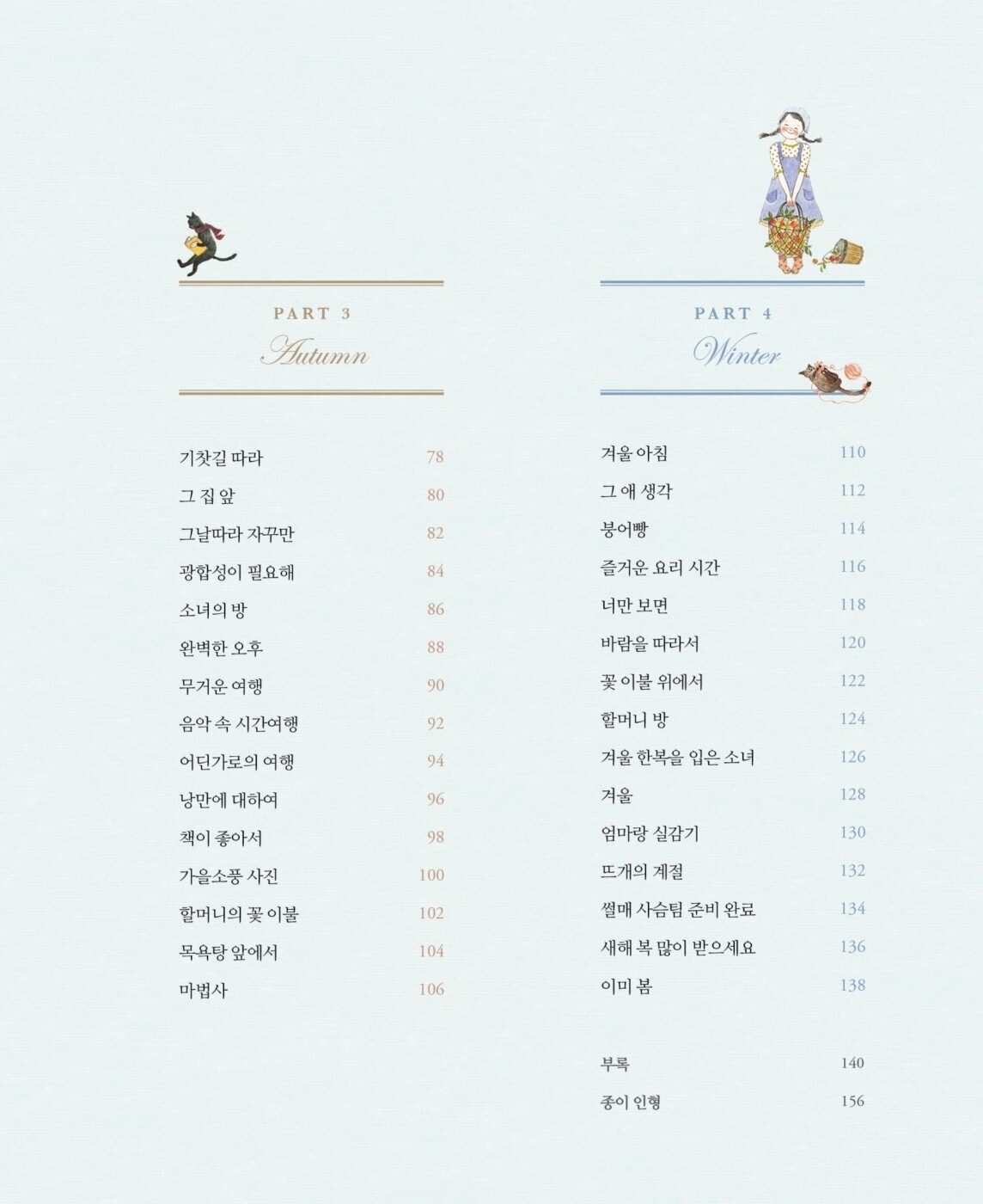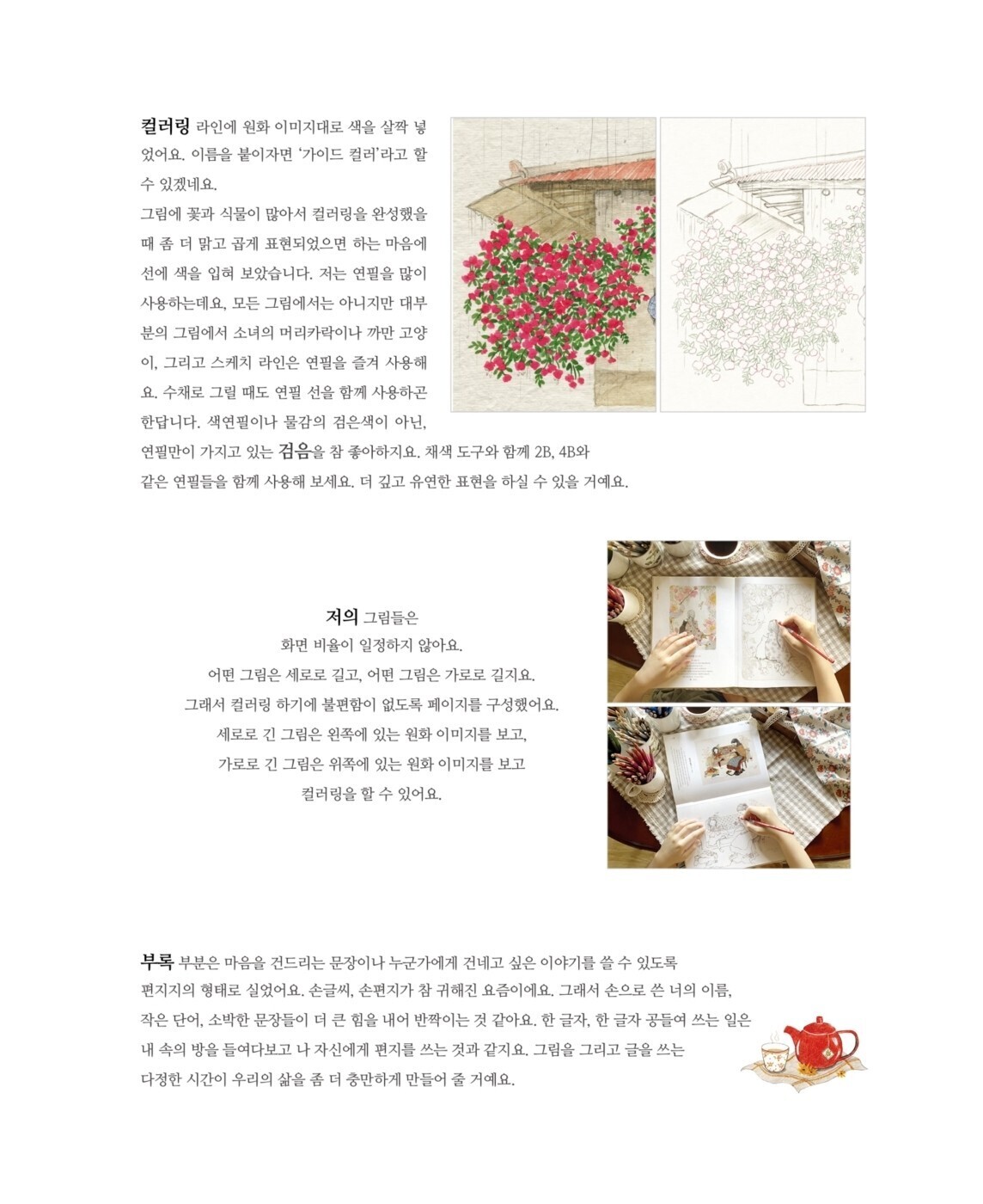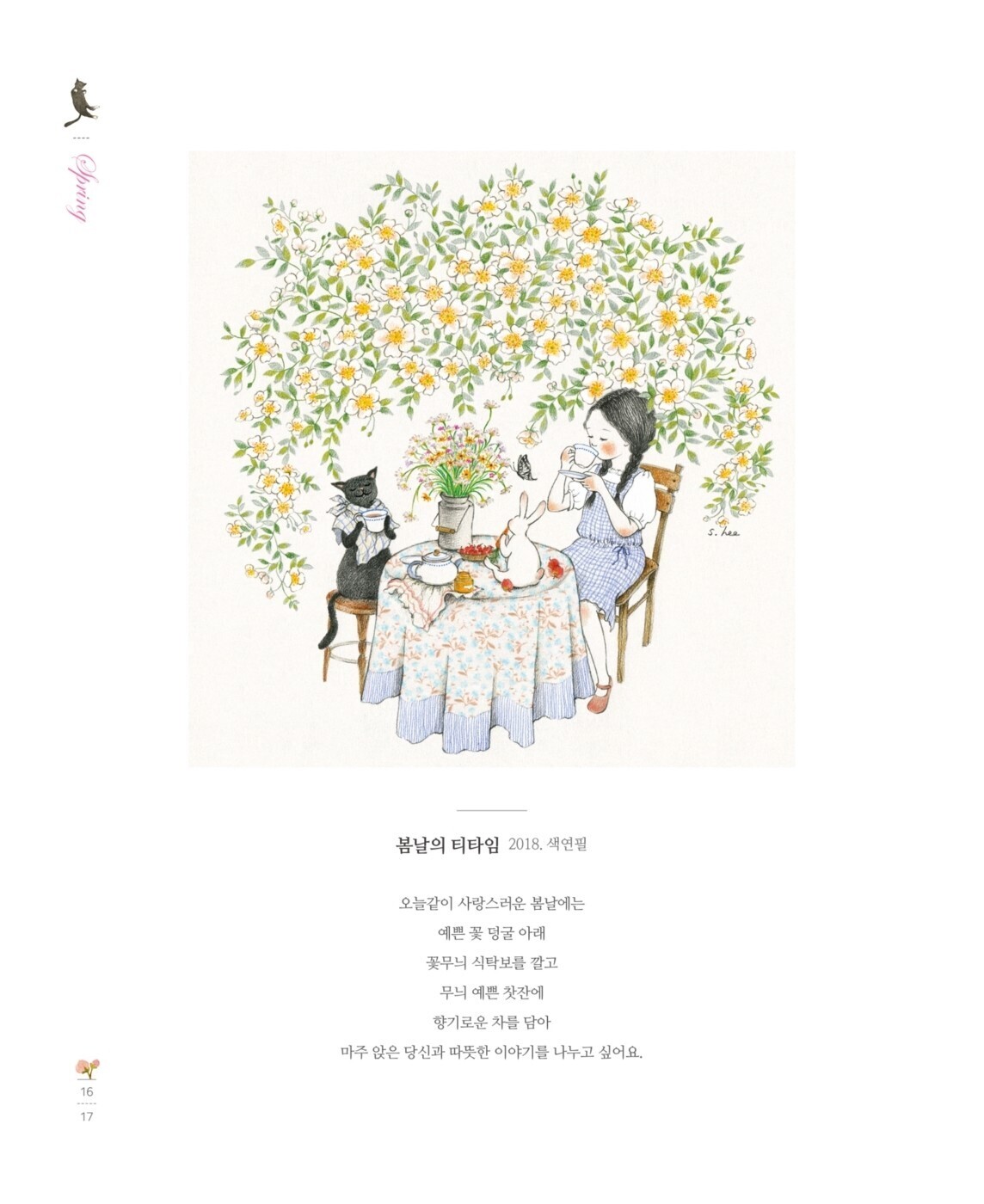 Раскраска Чорок Дамджэнги включает 60 иллюстраций, вдохновленных красотой природы и меняющимися сезонами. Каждая картина пропитана атмосферой ностальгии, возвращая нас к самым светлым и трогательным воспоминаниям. Милые сцены с девочкой, наслаждающейся природой в компании кошек, собак, оленей и других животных, дарят умиротворение и радость.