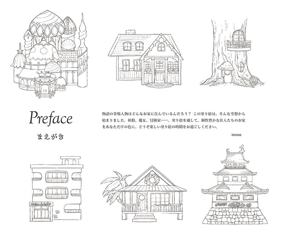 Таинственный Кристальный собор, окутанный снегом и льдом, замок русалки, скрытый среди коралловых рифов, комната королевы с видом на прекрасный внутренний двор, загородный дом посреди виноградников, вилла, где отдыхает Санта-Клаус, отель вампиров под светом луны, крошечный домик маленьких человечков... Жители этих мест невероятно уникальны. Каждый раз вы будете находить что-то новое, и раскраска никогда не надоест.