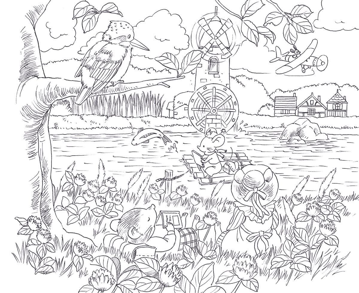 - История Юрури: Лес, где живёт мышка Юрури, полон красочной природы и добрых друзей-животных. Раскраска включает детализированные рисунки растений и животных, оживающих на страницах книги.
